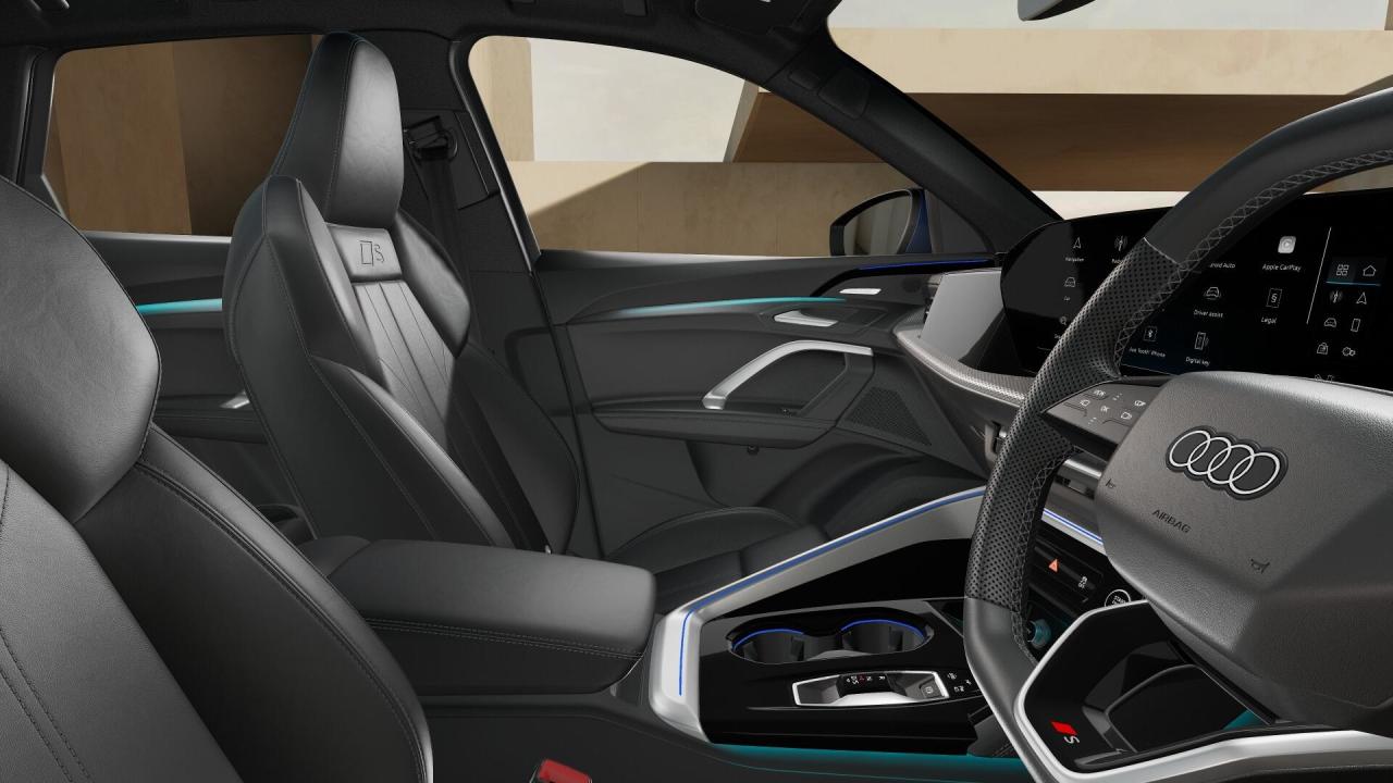 In addition to the S line equipment, this particular Q5 benefits from the optional Sound and Vision Pack, which includes features such as the Bang & Olufsen 3D premium sound system, 360-degree camera system, and the high-resolution MMI Navigation Plus with MMI touch — delivering enhanced comfort, technology, and connectivity on every journey.
