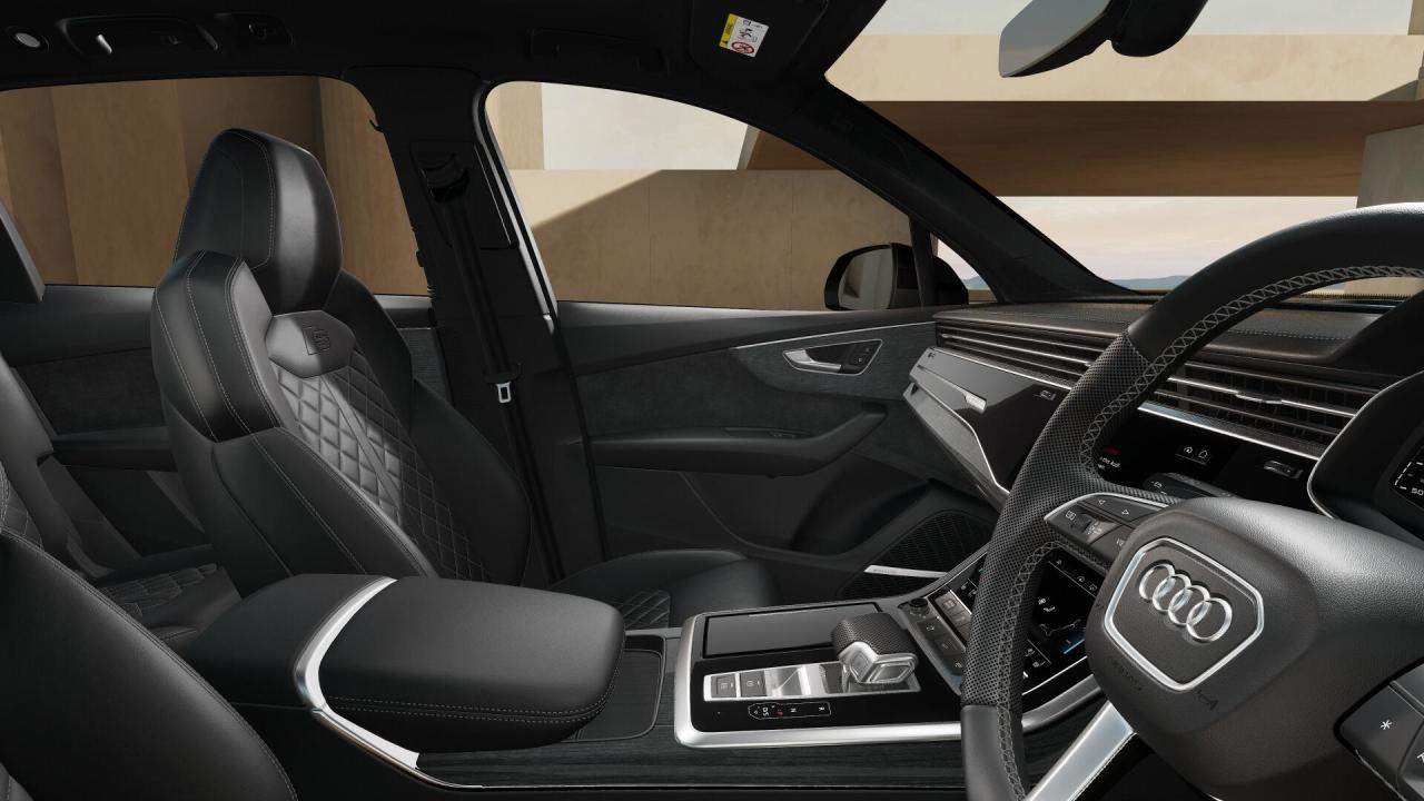 This Black Edition trim is equipped with striking 22" Audi Sport alloy wheels, red brake calipers, and a host of premium standard equipment including heated steering wheel, advanced safety systems, luxurious interior finishes, and comprehensive infotainment and driver assistance technology.
